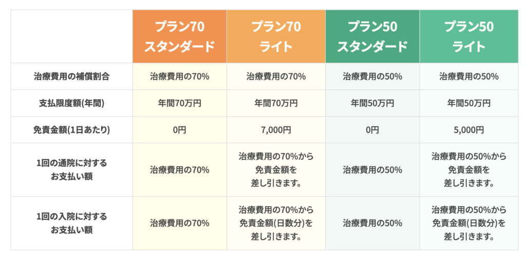 • 一定の自己負担額(例:通院1回につき3,000円など)を設定するプランもあり