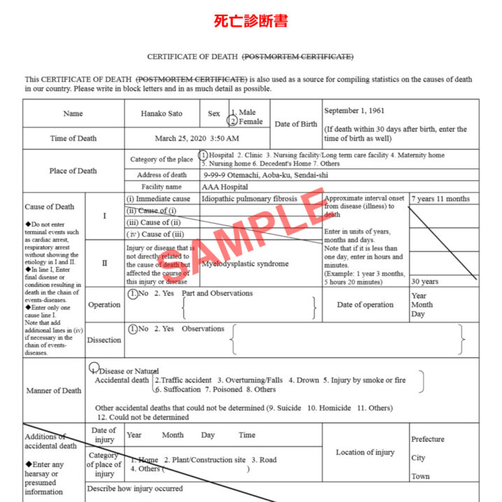 1. 死亡診断書を日本語から英語などに翻訳