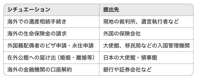 • 外務省での「アポスティーユ」や「大使館認証」が必要になるケースもあり