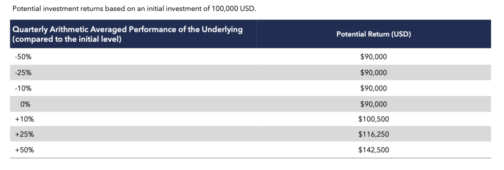 - 商品の仕組み―平均的な成長に105%で連動、下値は90%まで保護