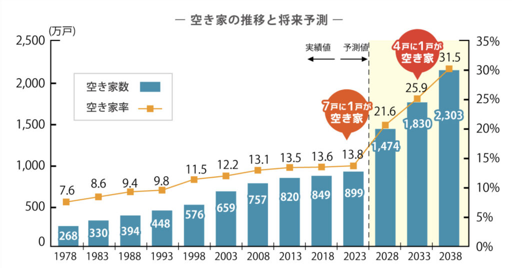 この数字には、今後相続によって市場に放出される「空き家予備軍」も控えており、住宅の“過剰在庫”状態はますます深刻化するでしょう。