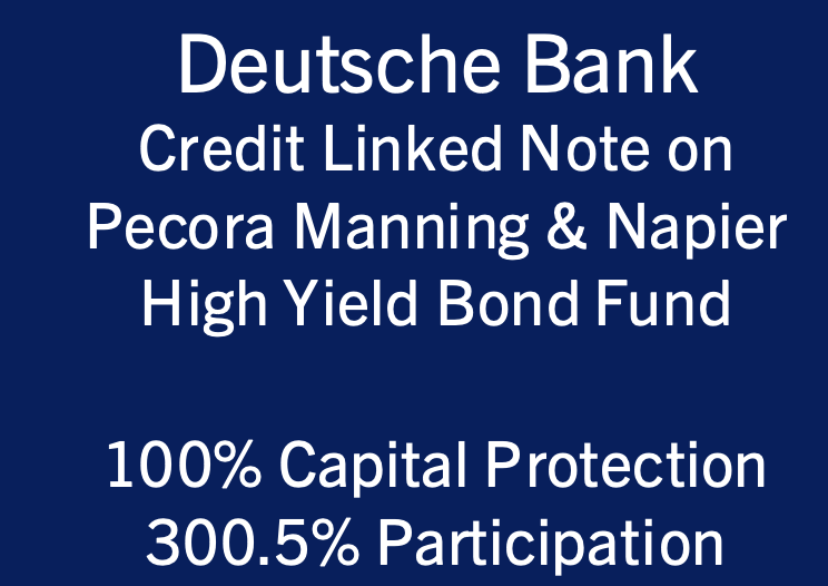 今回ご紹介する商品「Deutsche Bank Credit Linked Note on Pecora Manning & Napier High Yield Bond Fund」は、