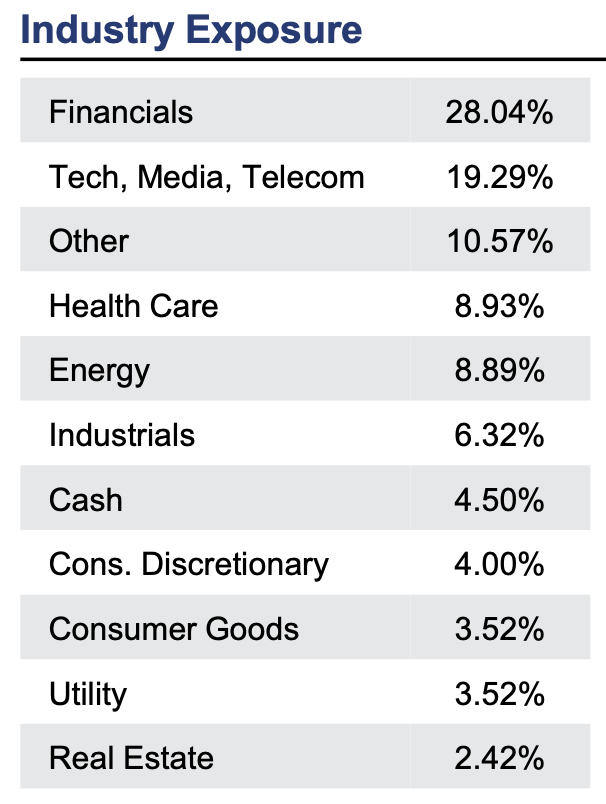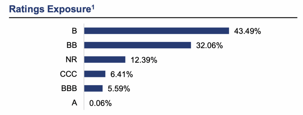 ポートフォリオ全体の約90%が非投資適格債、平均利回りは8.60%、平均デュレーションは約3.2年と、インカム獲得に加え、金利上昇局面でも比較的耐性のある構成となっています。