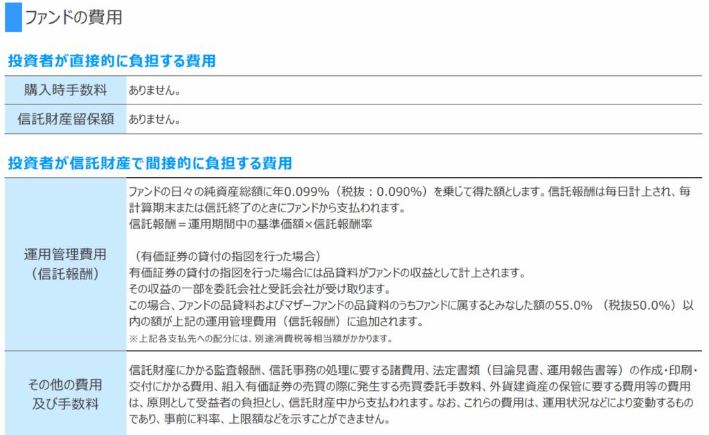 毎年の管理費用は年0.099%程度、その他手数料もかかります。
