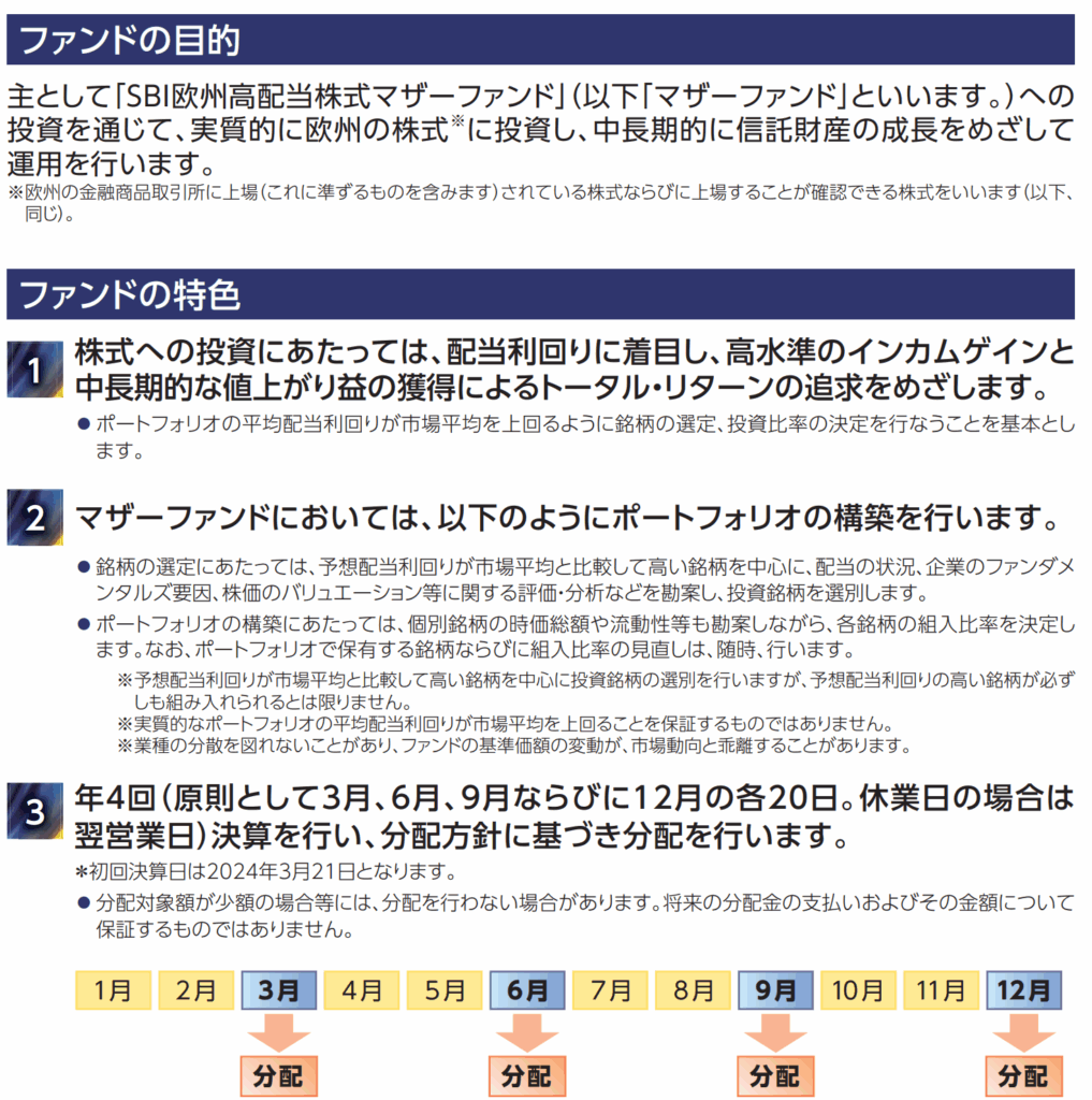 - SBIアセットマネジメント「SBI欧州高配当株式(分配)ファンド 愛称:SBI欧州シリーズ-欧州高配当株式(分配)」は欧州高配当株に投資するアクティブファンド