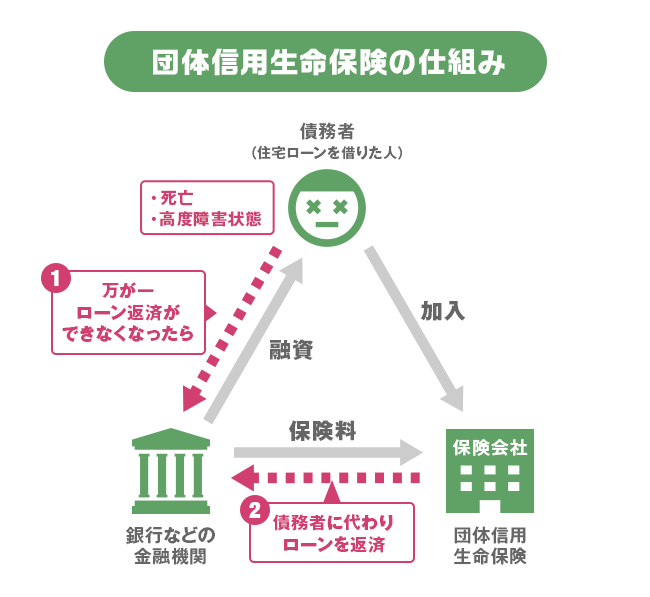 こうした「もしも」に備える制度が、**団体信用生命保険(通称:団信)**です。団信とは、住宅ローン契約者が死亡あるいは高度障害状態になった際に、保険会社が住宅ローン残高を金融機関に代わって支払うという仕組みです。つまり、残された家族はローンを相続せずにすみ、家を失わずに生活を継続できます。
