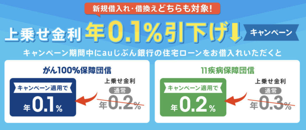 ただし、特約付き団信(がん・三大疾病など)を選択する場合には、金利が上乗せされます。