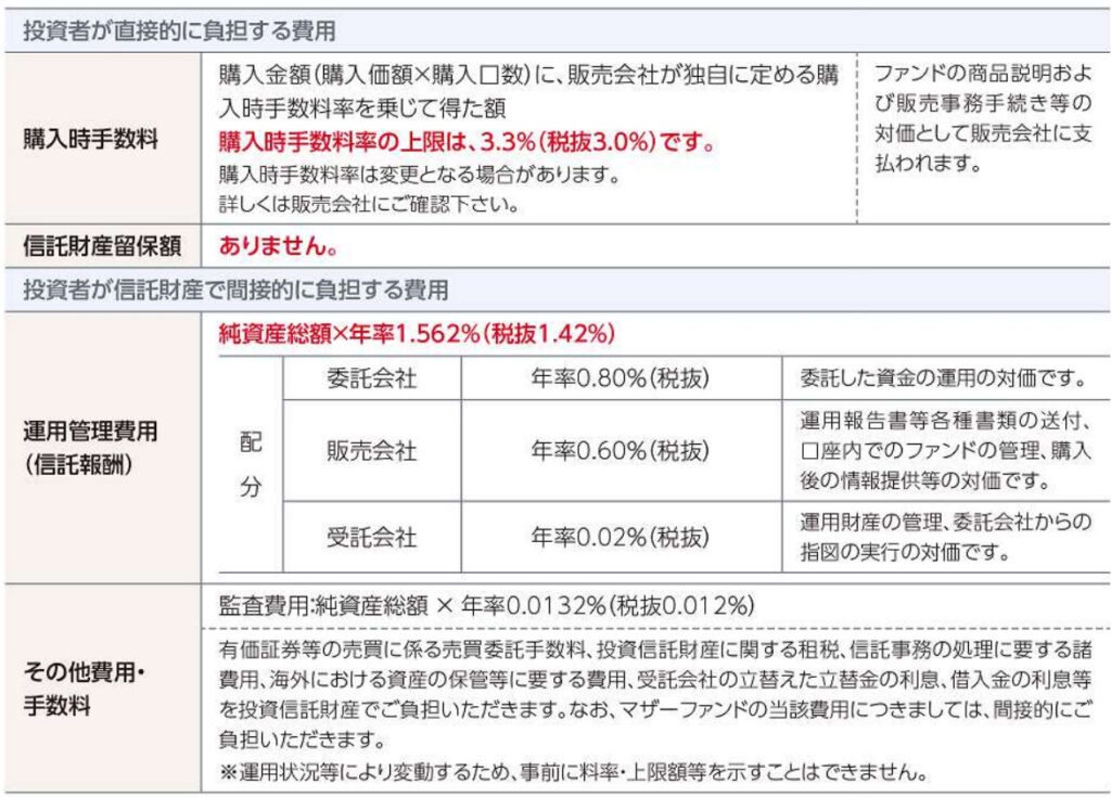 購入手数料は3.3%、毎年の管理費用は年1.562%程度、その他手数料もかかります。