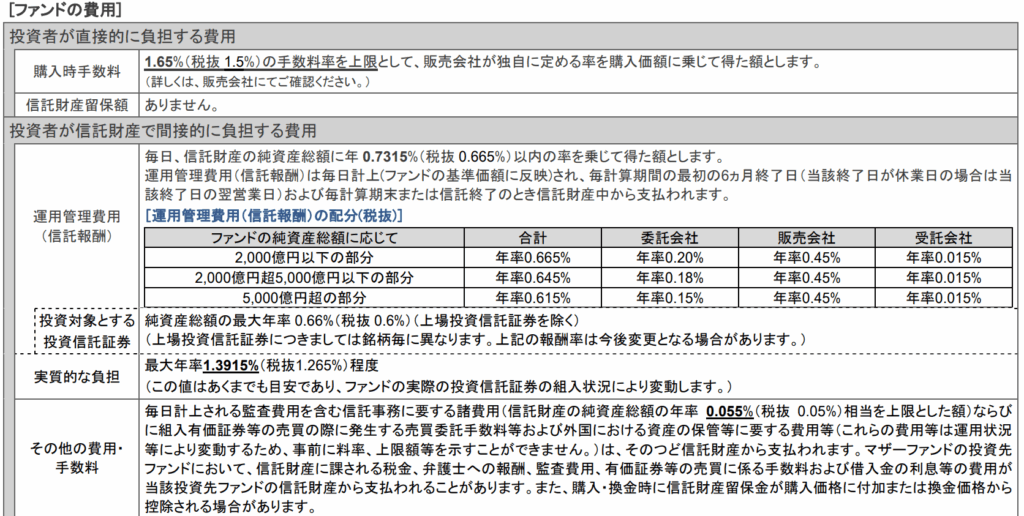 購入手数料は1.65%、毎年の管理費用は年1.3915%程度、その他手数料もかかります。