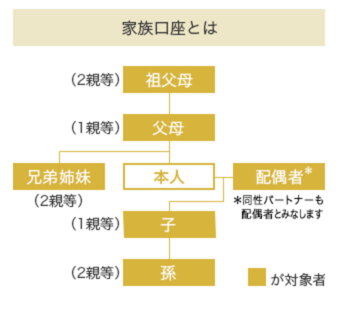 • 登録可能な家族: 二親等以内(配偶者・子・兄弟姉妹など)が一般的