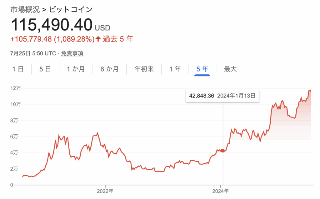 • 2025年7月中旬:最高値122,838ドルを記録