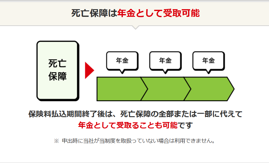 • 死亡保障は一時金だけでなく年金としても受け取れる
