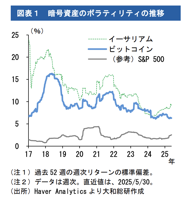 暗号資産のボラティリティが低下傾向にあり、ポートフォリオに組み入れやすくなっている