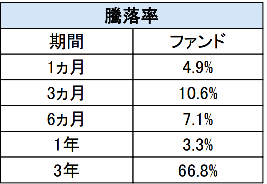 3年騰落率はいいですが、1年だとこの程度なんですね。日本株アクティブファンドはやっぱりダメかなと思ってしまいました。
