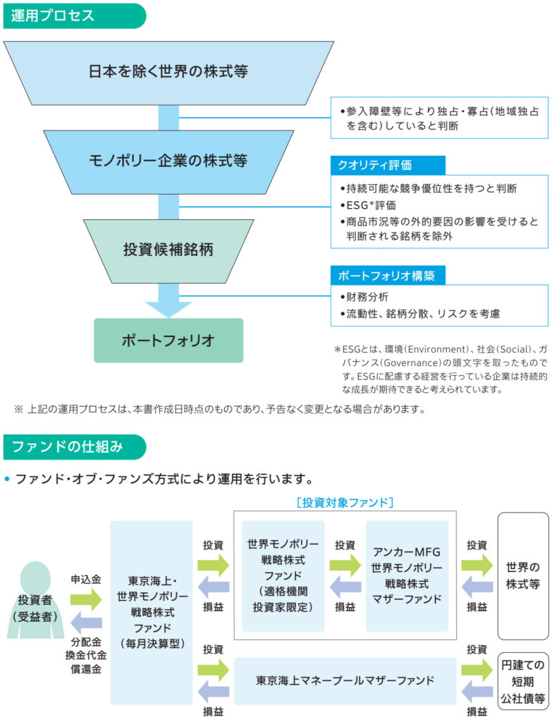 - 東京海上アセットマネジメント「東京海上・世界モノポリー戦略株式ファンド」は世界の株式の中からモノ・サービス等を独占・寡占している企業に投資するアクティブファンド