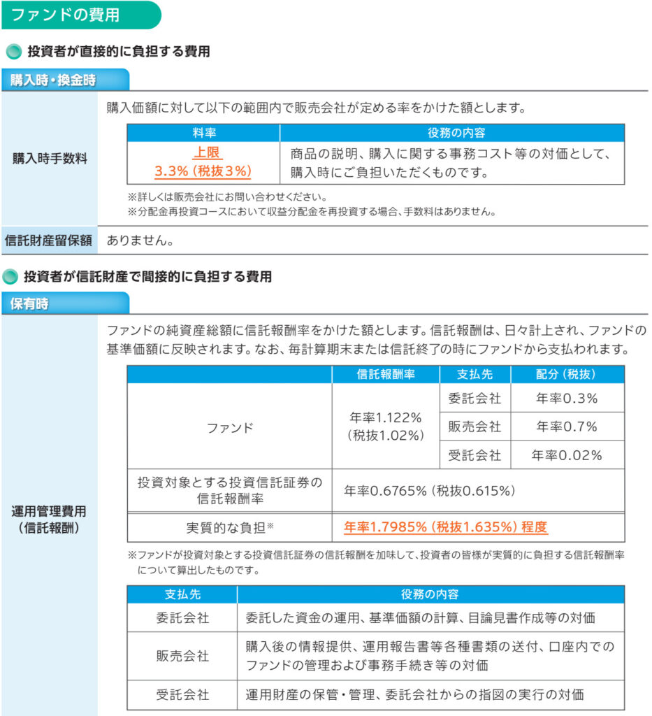 購入手数料は3.3%、毎年の管理費用は年1.7985%程度、その他手数料もかかります。