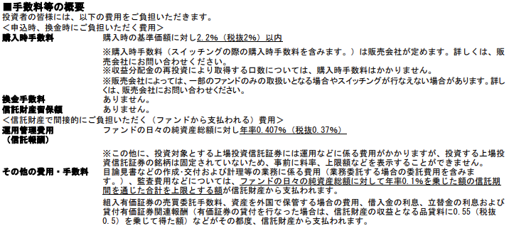 購入手数料は2.2%、毎年の管理費用は年0.407%程度、その他手数料もかかります。