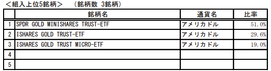 投資先は現在3銘柄となっていて、先ほど解説でも触れた金地金価格に連動するETFに投資されています。