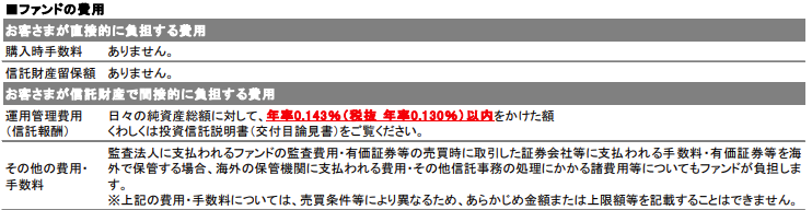 毎年の管理費用は0.143%程度、その他手数料もかかります。