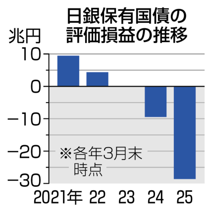 注目すべきは「評価損益」です。2023年度には国債保有で約28兆円もの評価損が計上され、市場金利上昇が日銀財務に直撃しました。ただし日銀は国債を満期まで保有する前提で会計処理を行い、簿価ベースで安定性を保っています。しかし利上げ局面が続けば損失リスクは拡大し、将来的に政府への納付金(国庫納付金)が減少する可能性も指摘されています。
