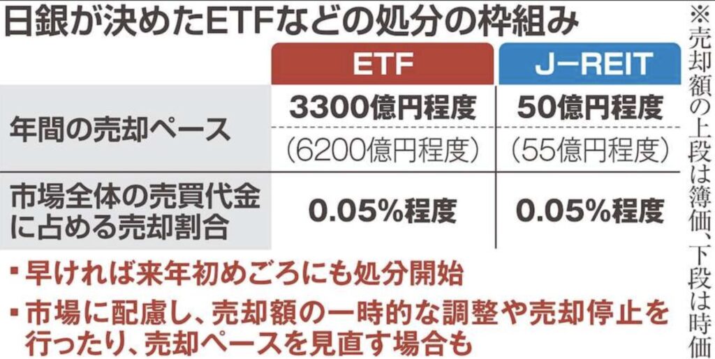 しかしREIT市場はETFより流動性が低く、日銀が過度に保有すれば価格形成を歪めやすいという課題があります。そのため売却方針はより慎重で、2025年9月から年間50億円程度というごく小規模なペースで処分を始めています。これは「象徴的な出口」でもあり、市場へのショックを避ける意思の表れといえるでしょう。