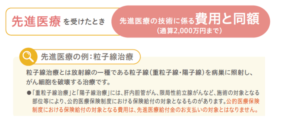 先進医療による療養を受けた時、かかった技術料と同額を受取れます。
