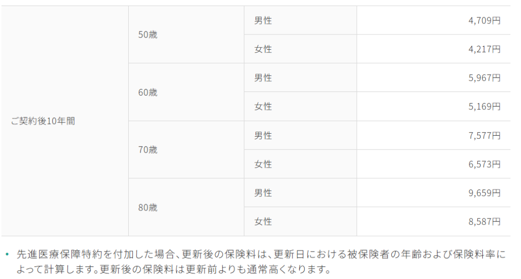 50歳からしか加入できないため保険料は高めですね。さらに解約時に戻るお金は無いので途中解約には向いていません。
