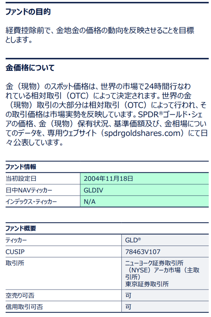 - ステート・ストリート・グローバル・アドバイザーズ「SPDR®ゴールド・シェア(1326)」は金(現物)に投資するファンド