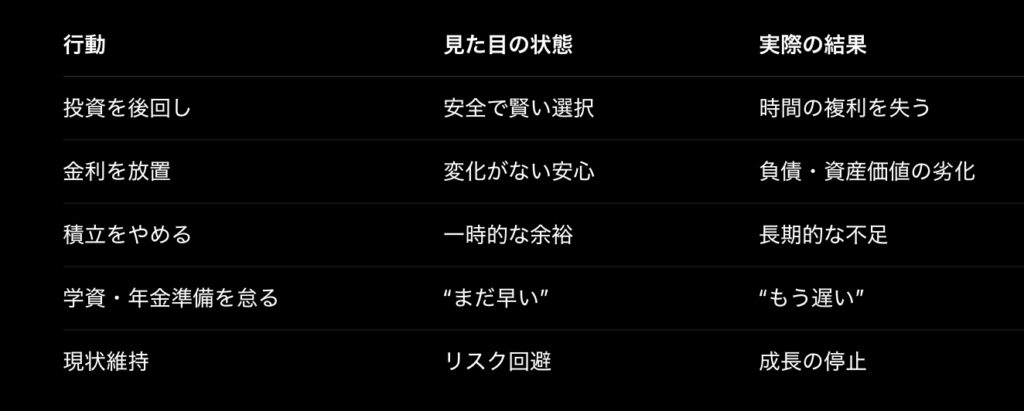 **「何もしない」は実は“最も危険な投資行動”**なのだ。