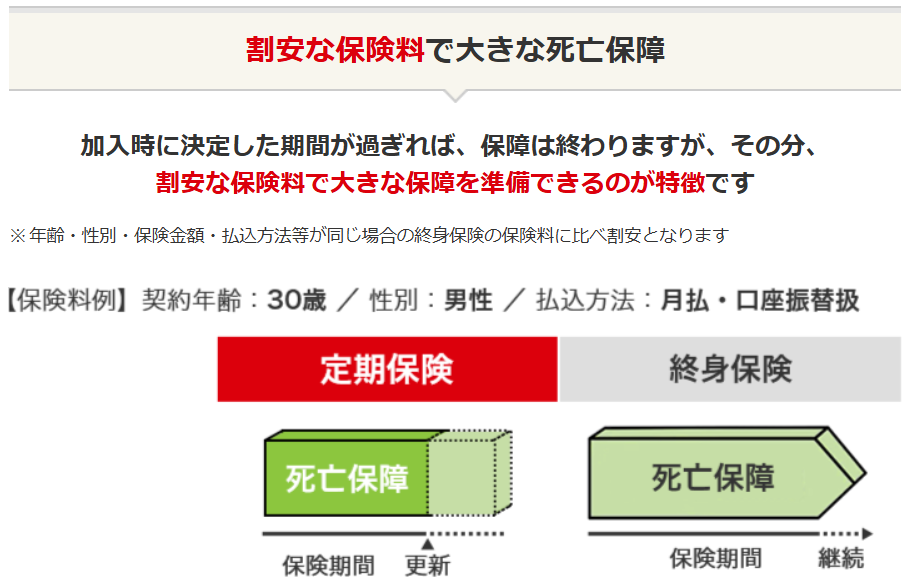 一定の期間だけ死亡保障を確保できる保険です。詳しく説明していきますね。