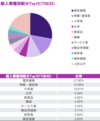 最近の日経はAI関連、半導体関連がけん引していて、電気機器、情報通信が組み入れ上位に入っています。