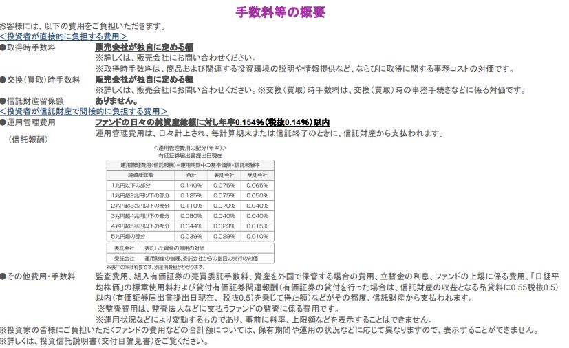 毎年の管理費用は年0.154%程度、その他手数料もかかります。