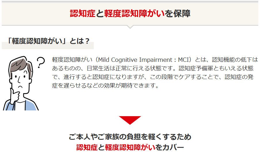 • 認知症サポート+は経度認知障がいから備えられる保険