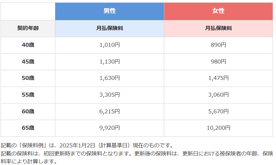 契約年齢(被保険者):40歳~75歳