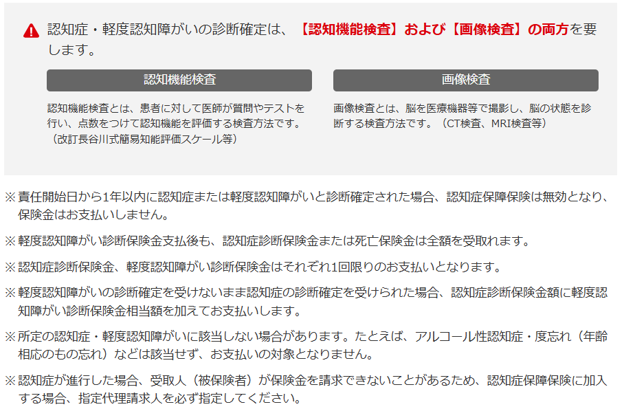 この保険の最大の特徴は、経度認知障がい(MCI)の段階から保障を受けられる点です。通常、認知症保険は重度認知症を対象とするものが多い中、ニッセイみらいのカタチ認知症+は早期の兆候段階であるMCIの診断時にも一時金が受取れる設計になっています。(認知症診断保険金の10%)
