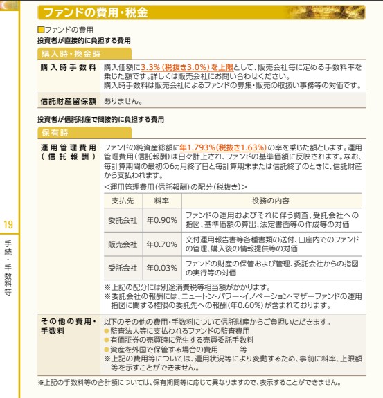 運用管理費用(信託報酬)は、ファンドの純資産総額に年率1.793%(税抜き1.63%)の率を乗じた額が日々計上されます。