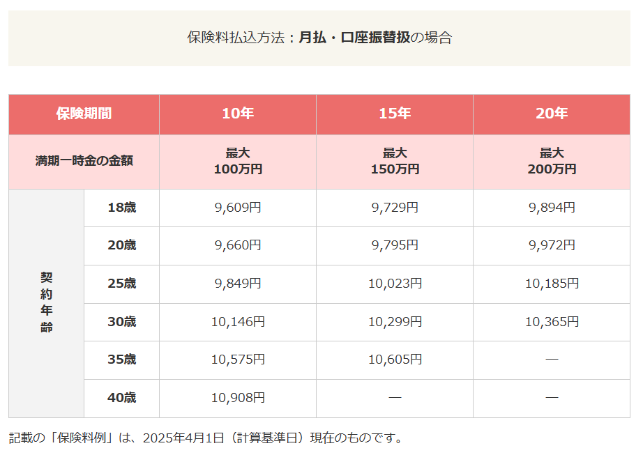 契約年齢(被保険者):18歳~40歳/女性のみ