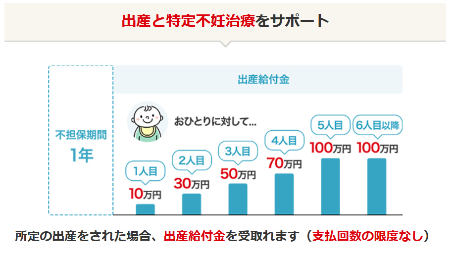 不妊治療や出産給付金だけでなく、満期時にも給付金があるのはいいですね。