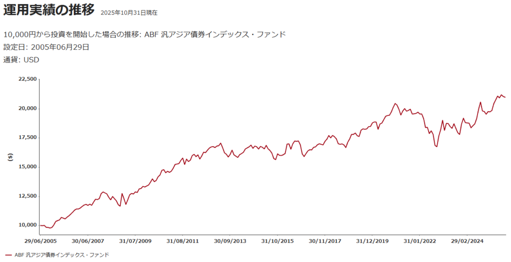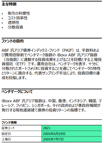 インデックスなので指数連動となり、対象インデックスはiBoxxABF汎アジア指数の値動きに連動となります。
