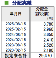 基準日2025年11月28日のデータになりますので参考にしてください。直近1年で+28.96%、3年で+82.34%の騰落率になります。
