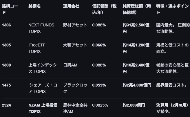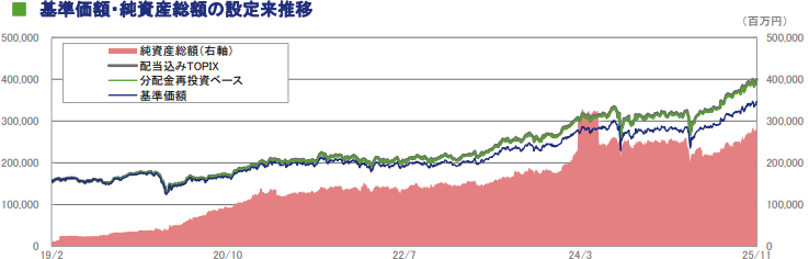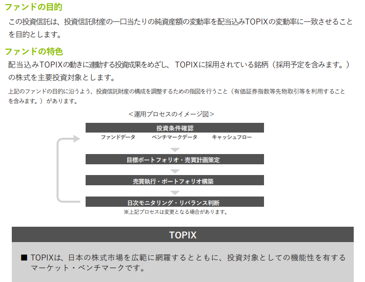 インデックスなので指数連動となり、対象インデックスはTOPIXの値動きに連動となります。