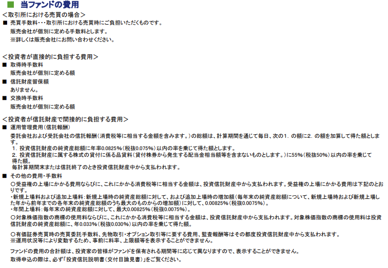 管理費用は年0.0825%程度、その他手数料もかかります。