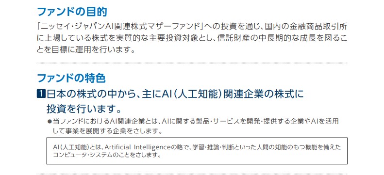 - ニッセイアセットマネジメント「ニッセイ・ジャパンAI関連株式ファンド(ジャパンAI革命)」は、国内のAI関連銘柄に100%特化したアクティブファンド