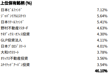 先ほど触れた通り、東証REIT指数に連動するETFになっている為、ほぼ指数と同じ投資割合になっています。特化型REITではない為、資料には細かい解説はありません。