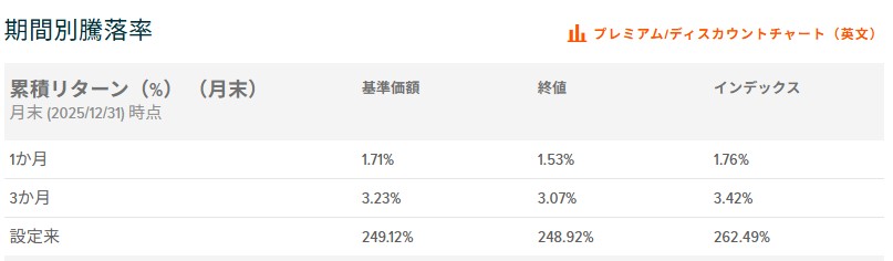 コストはそれなりにかかりますが、設定来で+249.12%という圧倒的な実績は魅力的ですね。