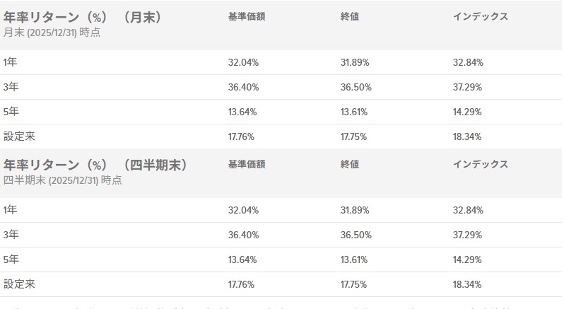 • 設定来+249.12%、直近1年も+32.04%という圧倒的な好実績を誇り、0.7075%の信託報酬も高い成長期待に見合う納得の水準