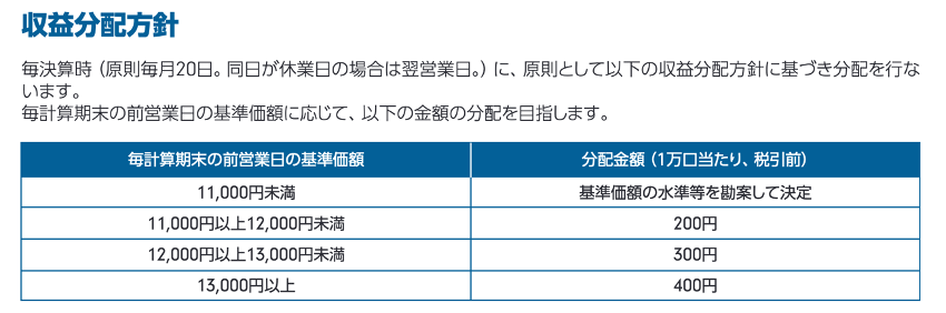 それぞれ以下のように収益分配方針を定めており、これに基づいて分配して行くようです。