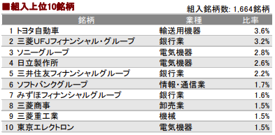 インデックスなので指数連動となり、対象インデックスはTOPIXの値動きに連動となります。
