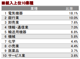 先ほど解説した通り、TOPIXはプライム市場に上場している全社から算出される指数となっている為、必然的に日本の大企業に投資するになります。現在は電気機器の業種への投資割合が多いようです。