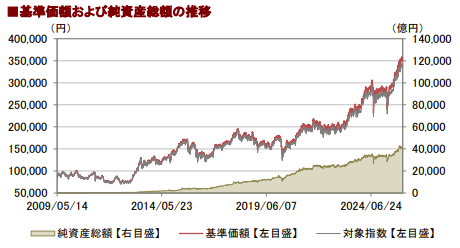 基準日2025年12月30日のデータになりますので参考にしてください。直近1年で+22.4%、3年で+80.4%の騰落率になり、年2回分配金も出ます。